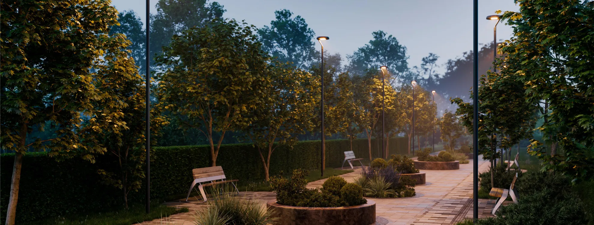 DEKKEL — ландшафтный светильник с асимметричной оптикой для современных общественных пространств: скверов, парков, набережных, частных резиденций. Светильник подчеркивает панораму, сохраняя стилистическую целостность ландшафта. Высокий индекс цветопередачи CRI>80 качественно передает природные оттенки и текстуры, а пылевлагозащита IP65 предполагает надежное использование светильника под открытым небом.