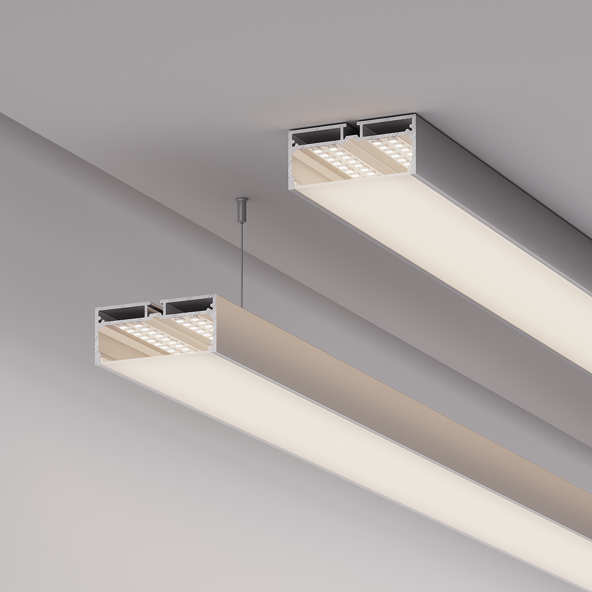 Подвесной/накладной профиль из анодированного алюминия в комплекте с матовым рассеивателем со светопропусканием 75% идеально подходит для основного освещения и контурной подсветки. Габаритные размеры профиля составляют 2000 мм в длину, 75 мм в ширину и 32 мм в высоту. Площадка для установки светодиодных лент позволяет использовать ленту шириной до 64 мм и мощностью до 56,1 Вт/м. Это обеспечивает гибкость в выборе светодиодных лент и создает потрясающие световые решения. Заглушки и другие аксессуары не включены в комплект и приобретаются отдельно. Цена указана за комплект. Отличное решение для создания современных световых проектов.