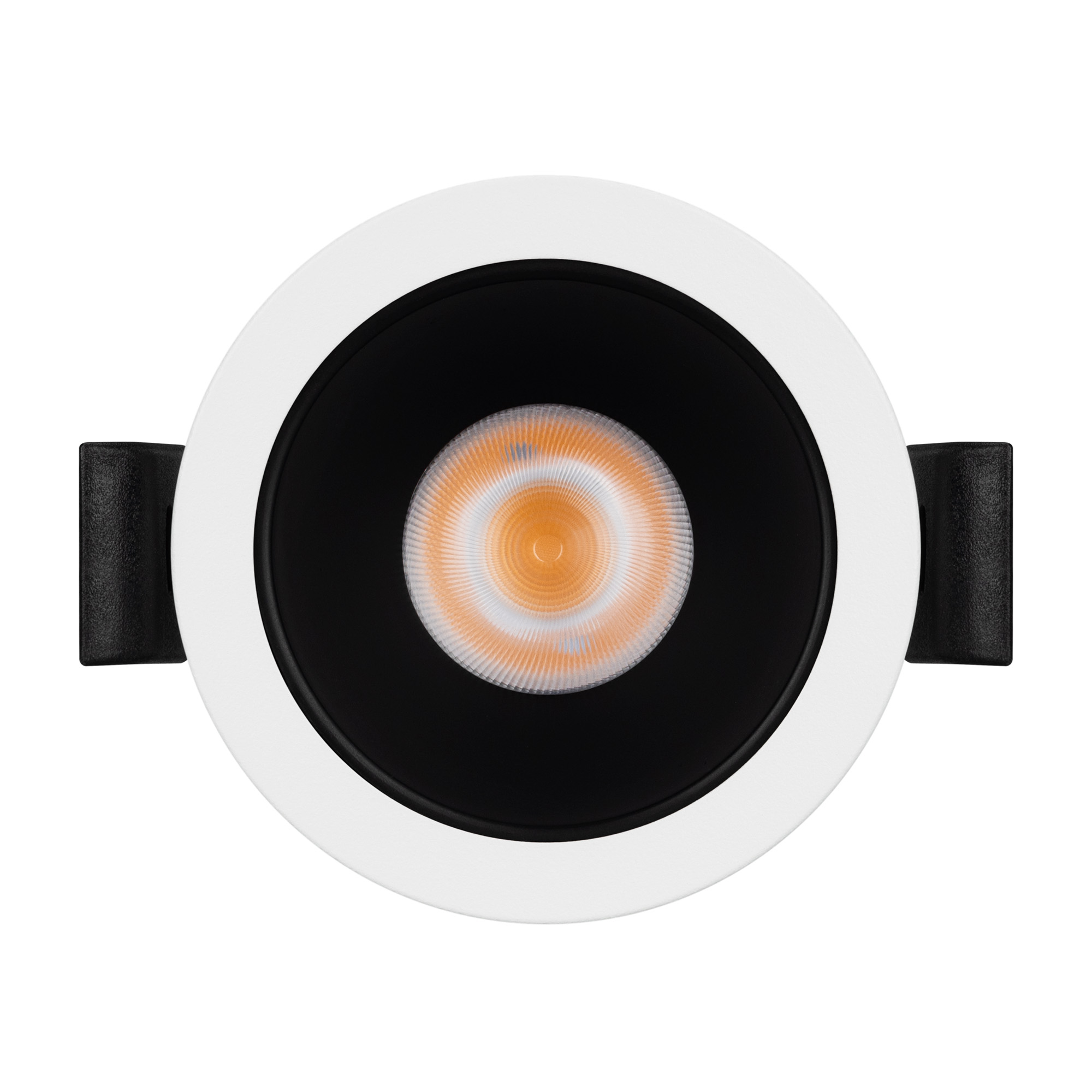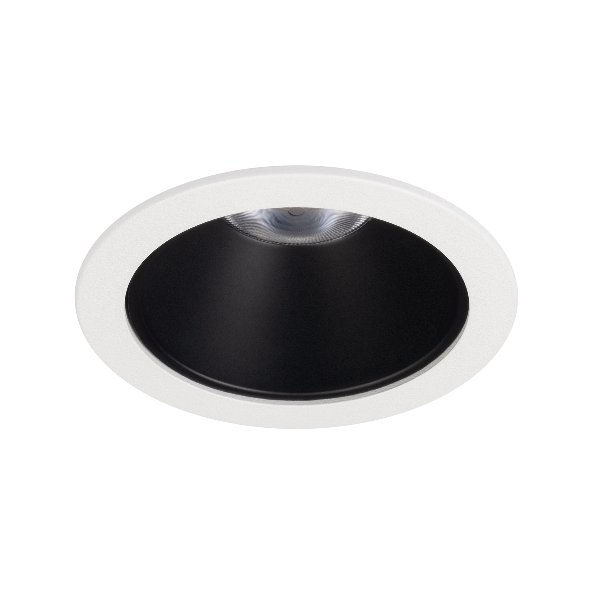 Встраиваемый светильник даунлайт. Мощность 10 Вт, св. поток 889 лм, 82 лм/Вт, дневной 4000 K, CRI>90, UGR<16, угол 35°, напряжение питания 230 В. Белый круглый корпус из алюминия, черный МАТОВЫЙ отражатель из PMMA, степень защиты IP20. Размер: диаметр 58 мм, высота 68 мм. Монтаж встраиваемый, установочное отверстие: диаметр 52 мм. Драйвер 20-40 В, 250 мА, пульсация <2%.
