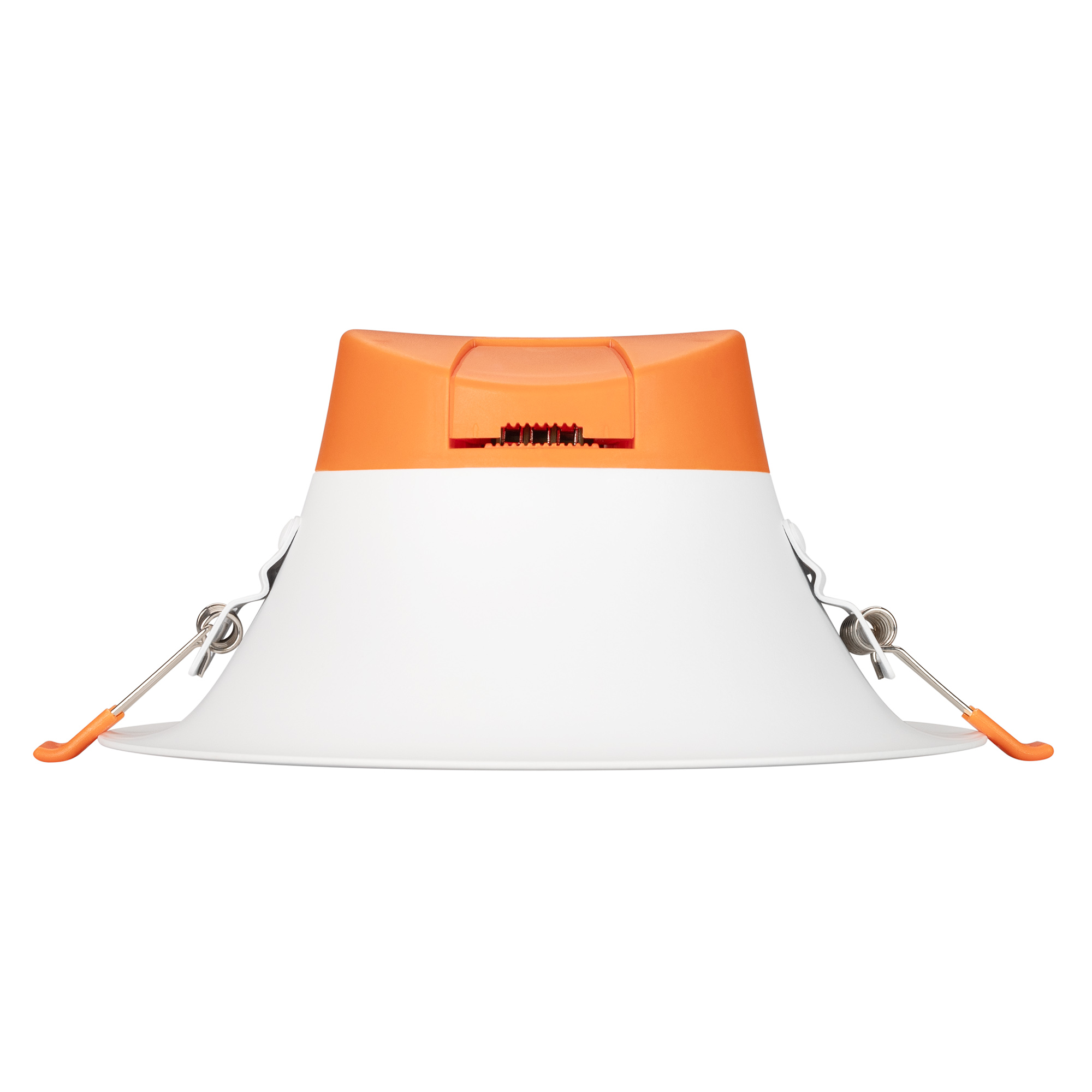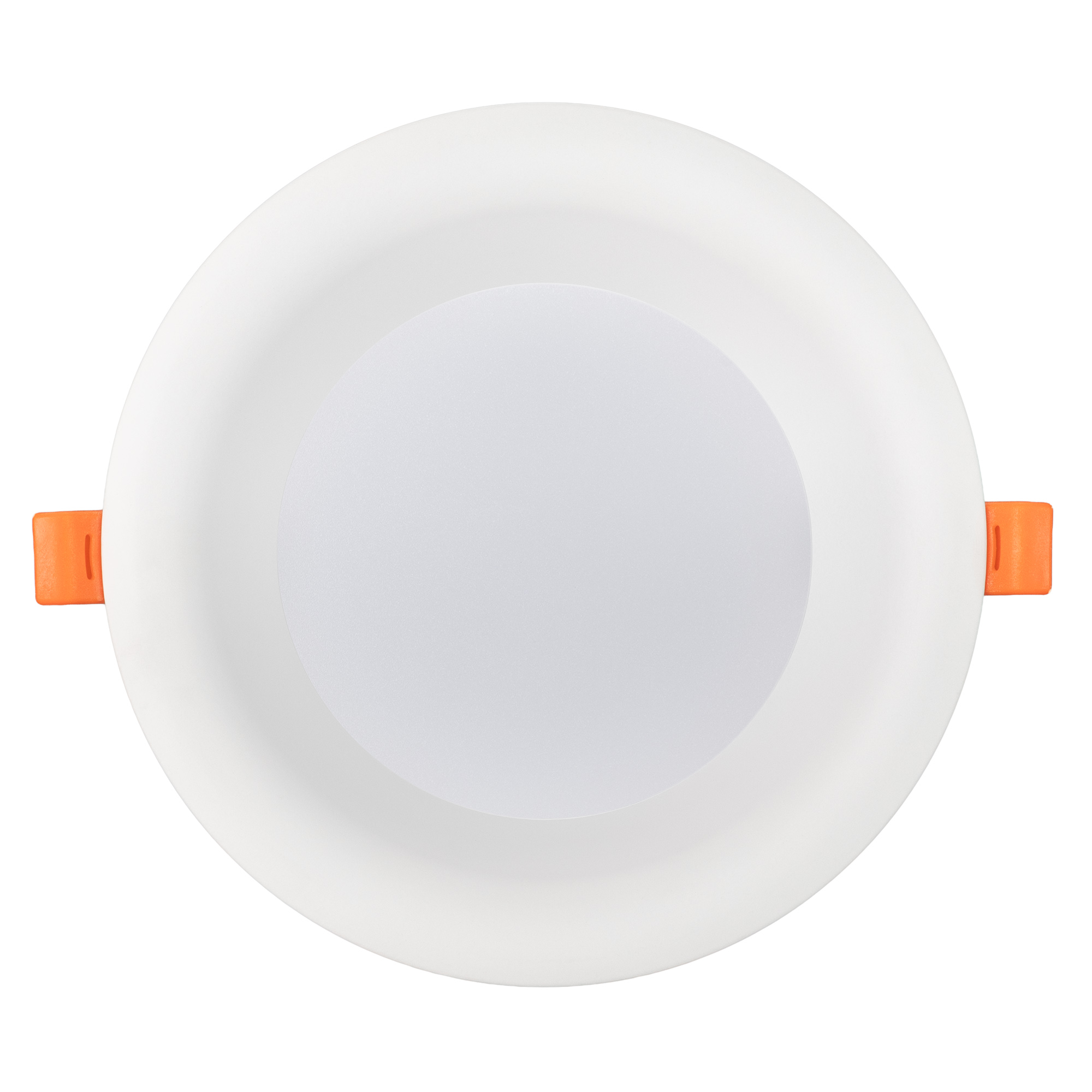 Встраиваемый светильник даунлайт с интегрированным в корпус драйвером. Мощность 16 Вт, св. поток 1380 лм, 86 лм/Вт, дневной 4000 K, CRI>90, угол 100°, напряжение питания 230 В. Белый круглый корпус из алюминия, степень защиты IP20. Размер: диаметр 165 мм, высота 78 мм. Монтаж встраиваемый, установочное отверстие: диаметр 150 мм. Пульсация <2%.
