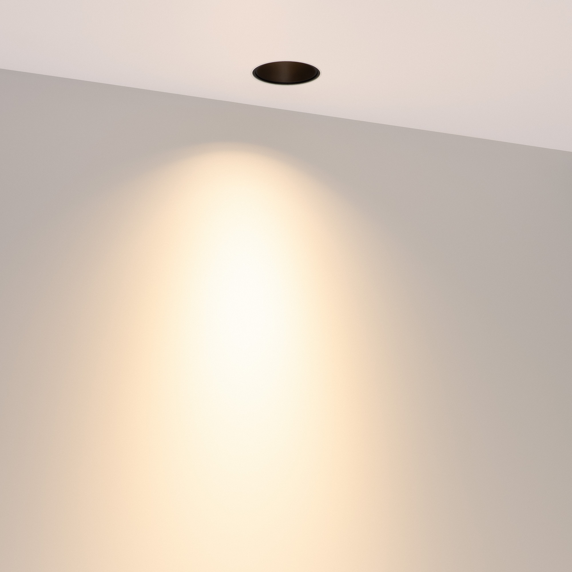 Встраиваемый безрамочный светильник под шпаклевку. Мощность 6.3 Вт, св. поток 455 лм, 72 лм/Вт, тёплый 3000 K, CRI>90, угол 40°, напряжение питания 230 В. Чёрный круглый корпус из алюминия, черный МАТОВЫЙ отражатель из PMMA, степень защиты IP20. Размер: диаметр 90 мм, высота 52 мм. Монтаж встраиваемый, установочное отверстие диаметр 65 мм. Драйвер 28-42 В, 150 мА, пульсация <2%.
