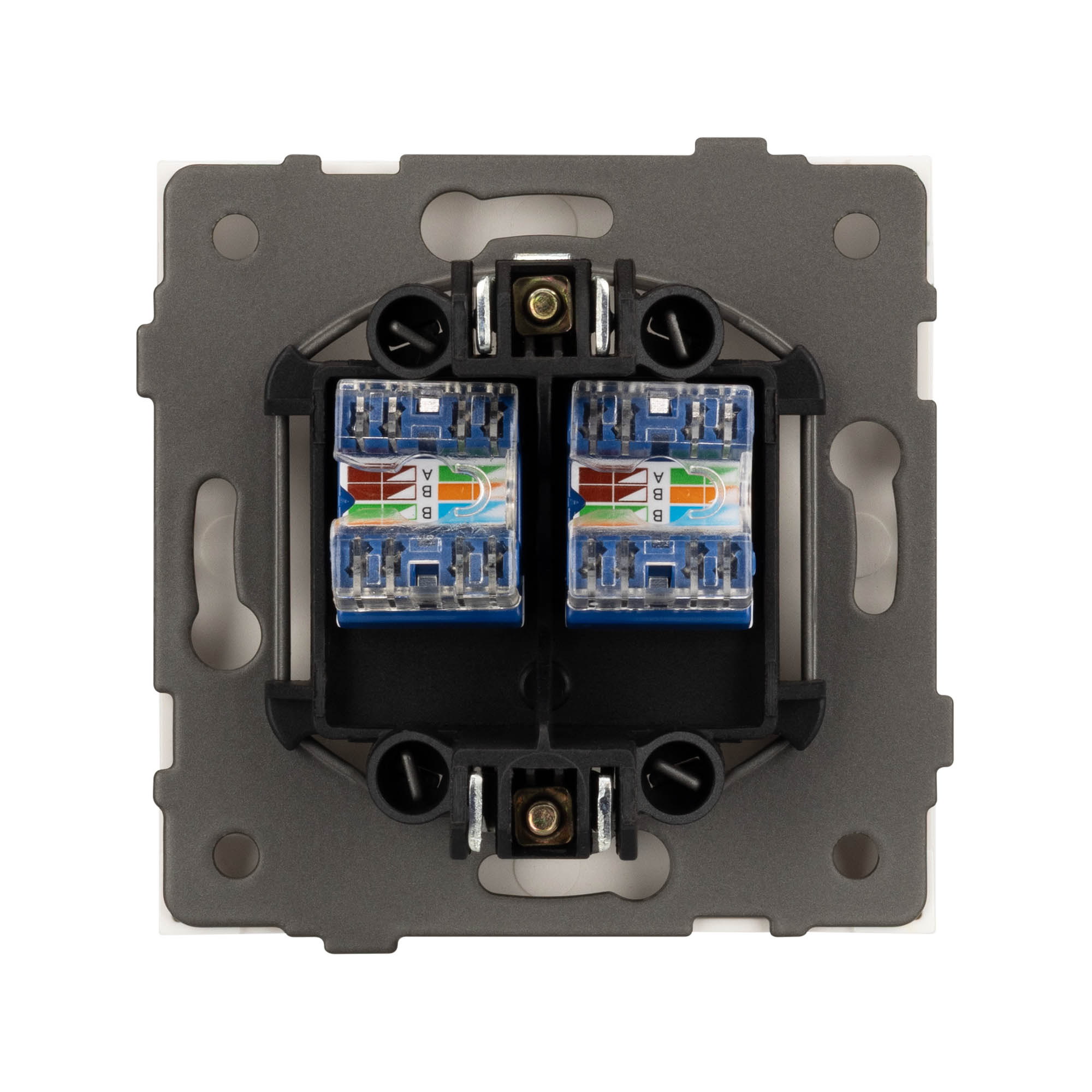 Механизм компьютерной розетки на 2 поста 6-й категории. Цвет - белый, с Soft-Touch покрытием. Без фронтальной рамки. Уровень пылевлагозащиты IP20. Розетка устанавливается в стандартный подрозетник круглого сечения диаметром 60мм. Габаритные размеры: длина 71 мм, ширина 71 мм, высота 42 мм. Гарантийный срок 10 лет.