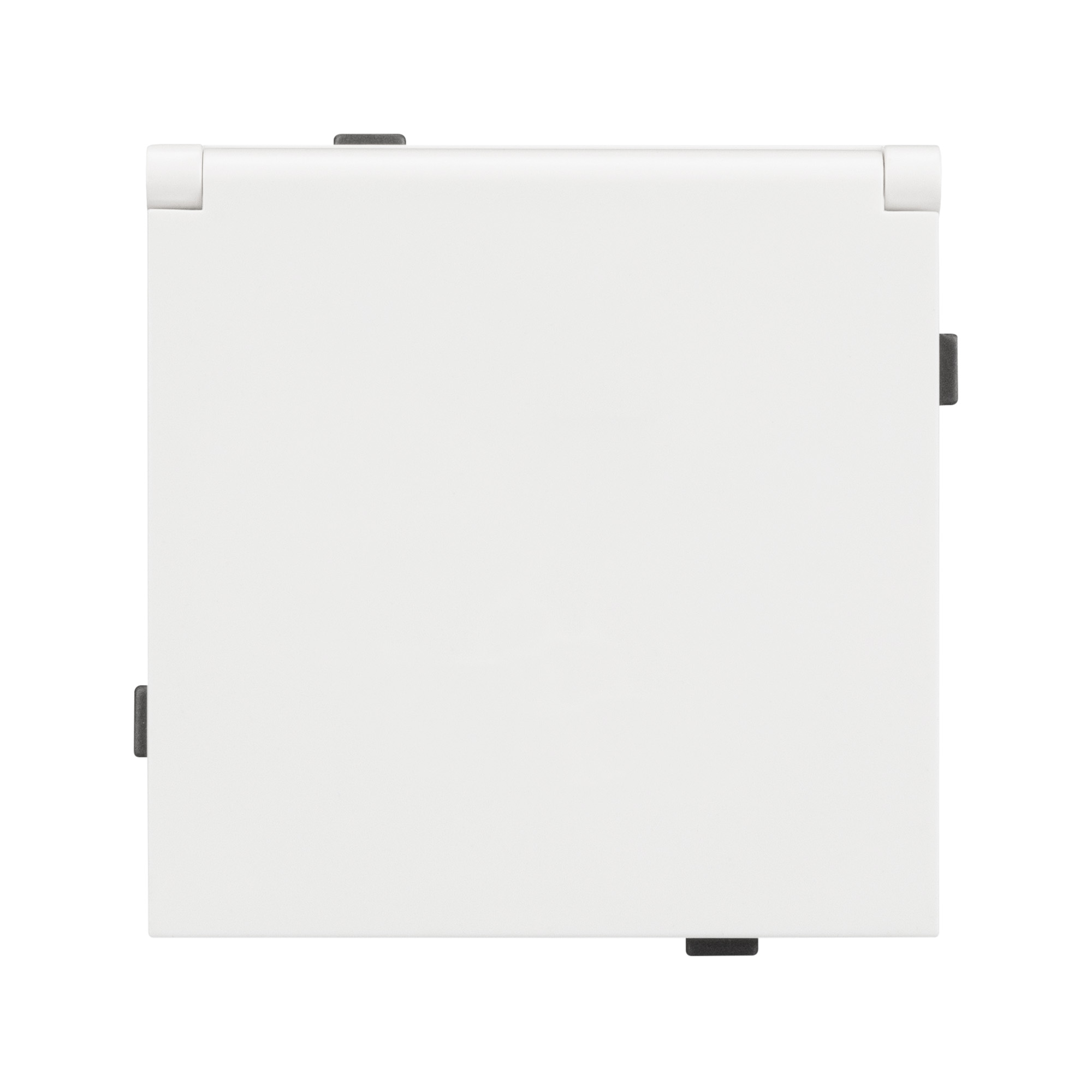 Механизм розетки с заземлением и влагозащитной крышкой на 1 пост. Цвет - белый, с Soft-Touch покрытием. Без фронтальной рамки. Уровень пылевлагозащиты IP44. Розетка устанавливается в стандартный подрозетник круглого сечения диаметром 60мм. Габаритные размеры: длина 71 мм, ширина 71 мм, высота 52 мм. Гарантийный срок 10 лет.