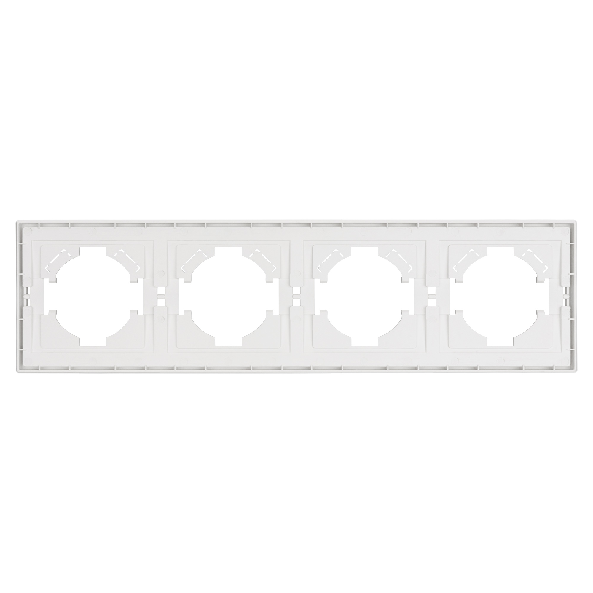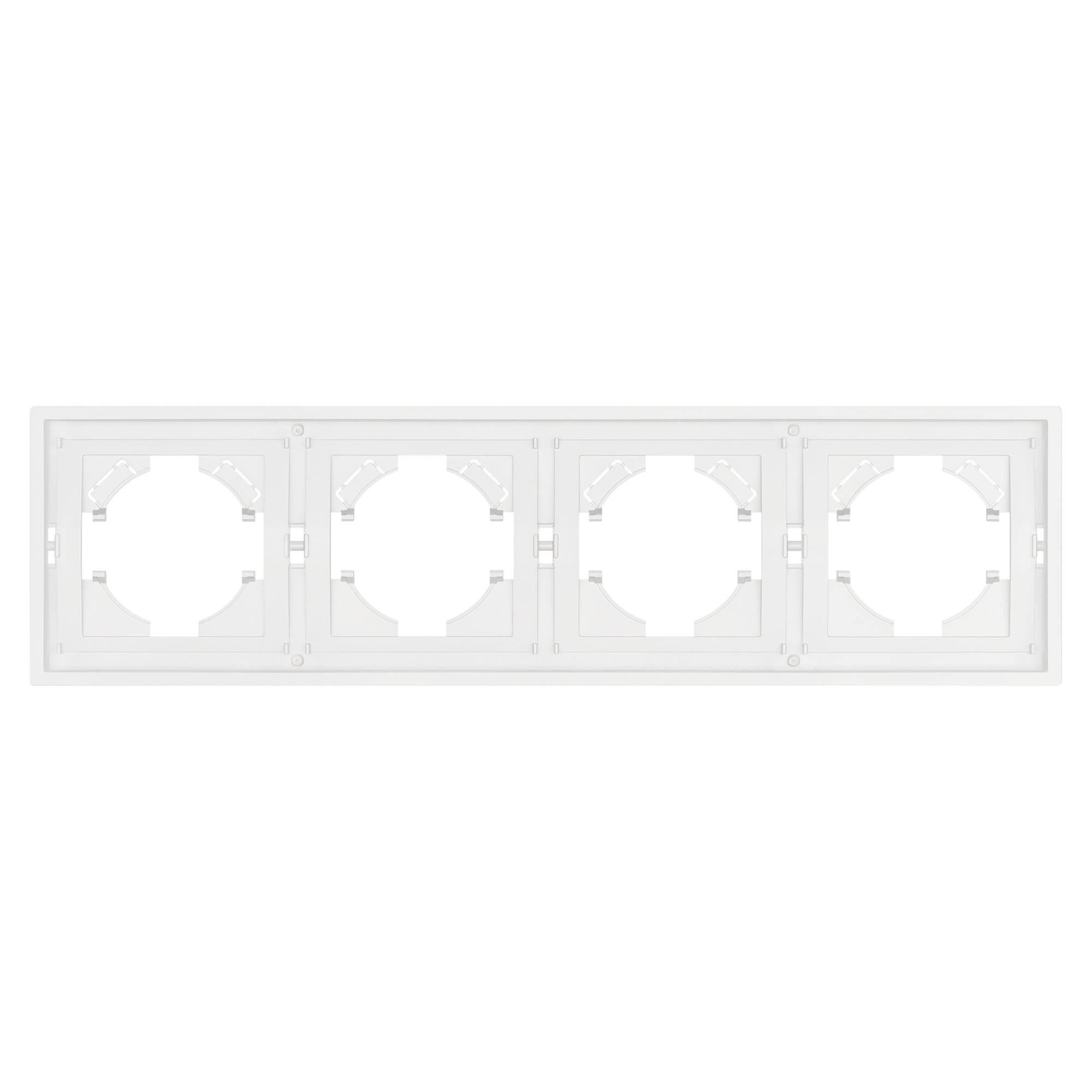 Рамка пластиковая на 4 поста, под встраиваемый механизм. Цвет - белый, с Soft-Touch покрытием. Среднего уровня герметичности IP20. Ориентация монтажа горизонтальная. Габаритные размеры: длина 294 мм, ширина 80 мм, высота 9 мм. Гарантийный срок 12 мес.
