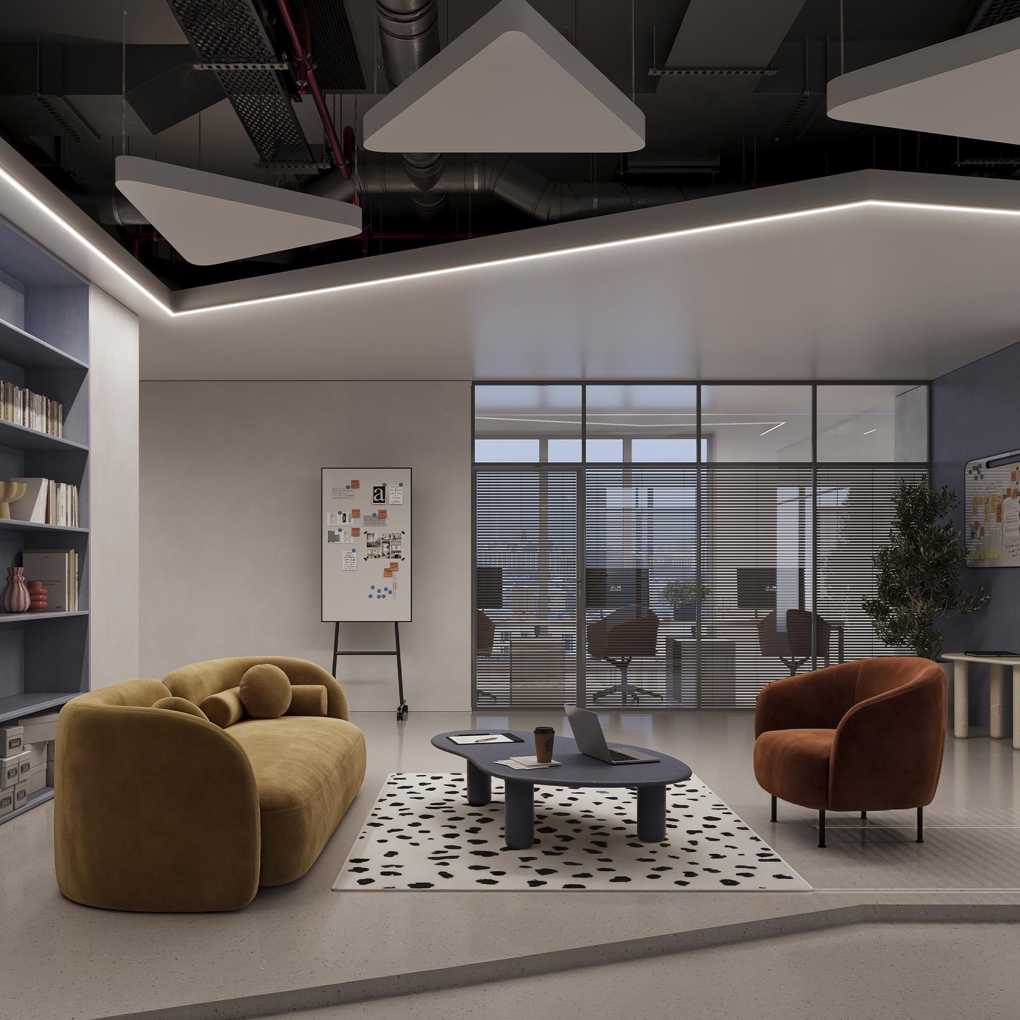 Угловой встраиваемый профиль со скрытым фланцем под строительную отделку из алюминия для установки в гипсокартон толщиной 16 мм для контурной подсветки.