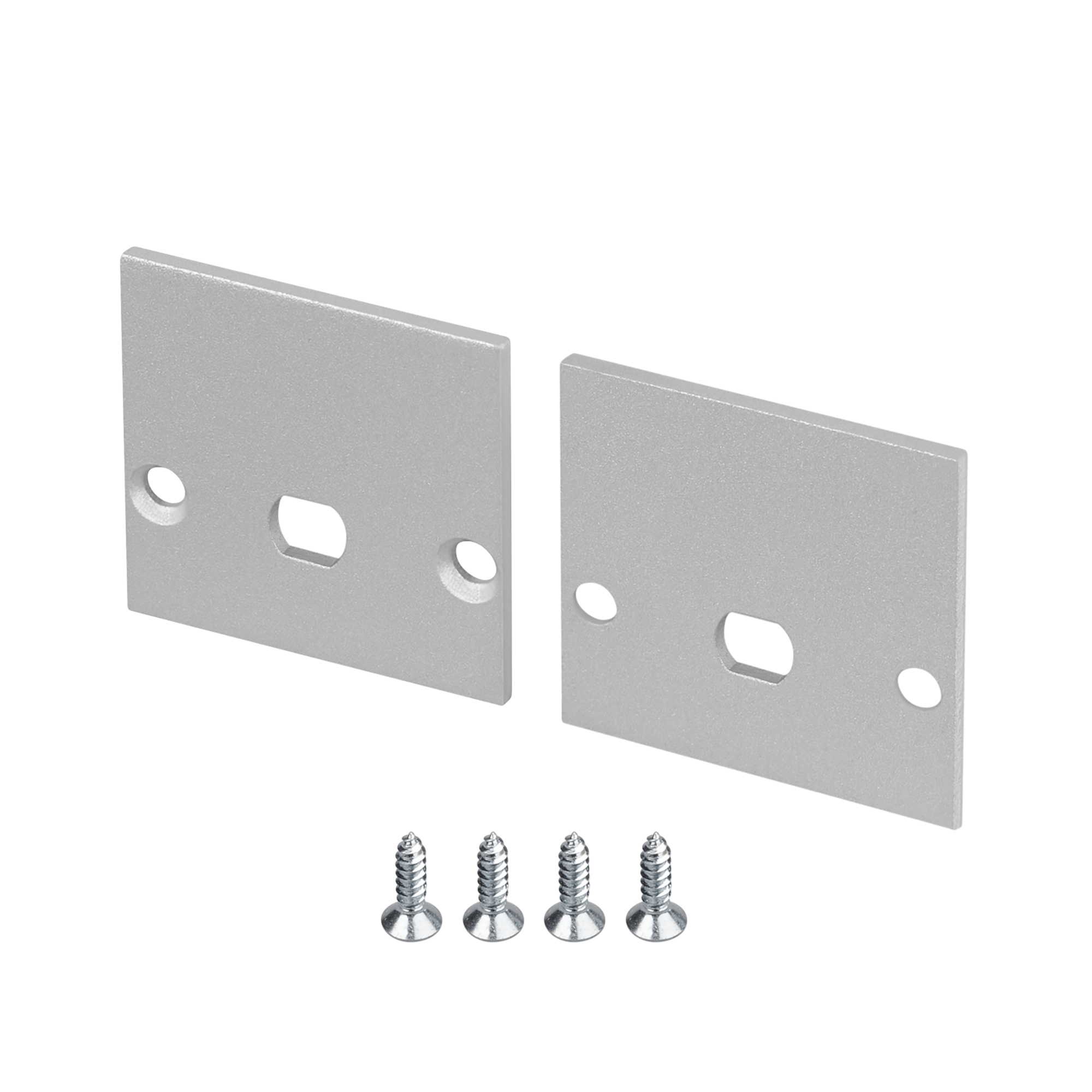 Пара заглушек с отверстием для профилей LINE-2525, LINIA25-FANTOM серебристого цвета. Материал - алюминий. В комплекте: заглушка - 2 шт., винт - 4 шт. Цена за комплект.