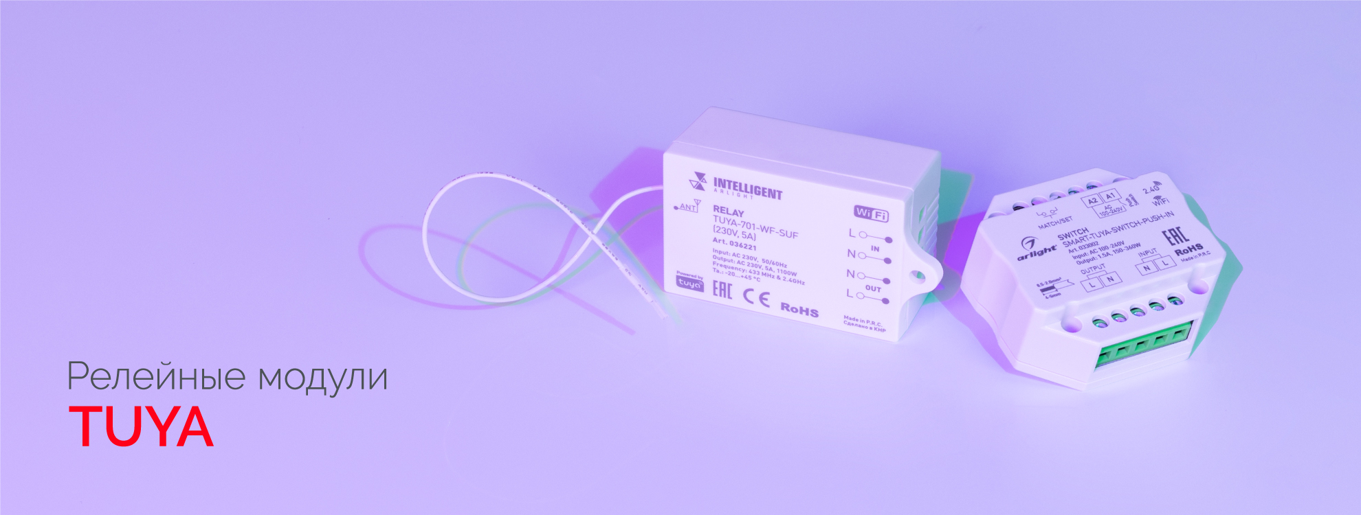 Релейные модули, управляемые посредством беспроводной облачной платформы TUYA со смартфона, предназначены для включения и выключения источников света, а также другой техники (вентиляторов, приводов, бытовой техники и т. п.)