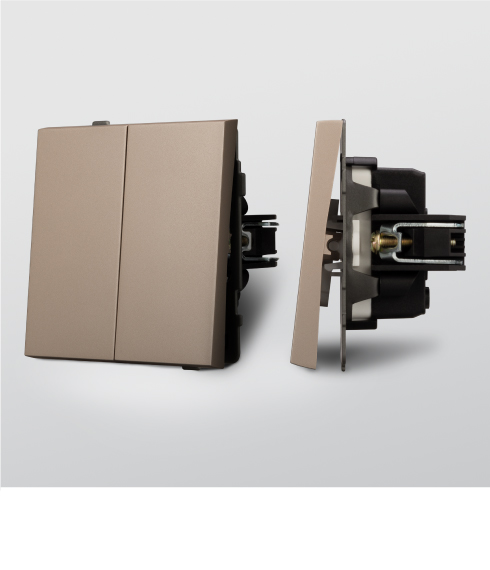 Механизм выключателя двухклавишный проходной SWT-TENDO-MKP2-PL-GD (230V, 10A) (Arlight, Песочный)
