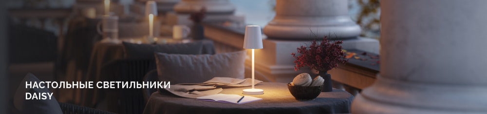Где бы вы ни задумали создать атмосферу — за рабочим столом, в кафе или на открытой веранде — переносной светильник DAISY не просто лампа, а надежный друг, создающий комфорт в любых условиях.