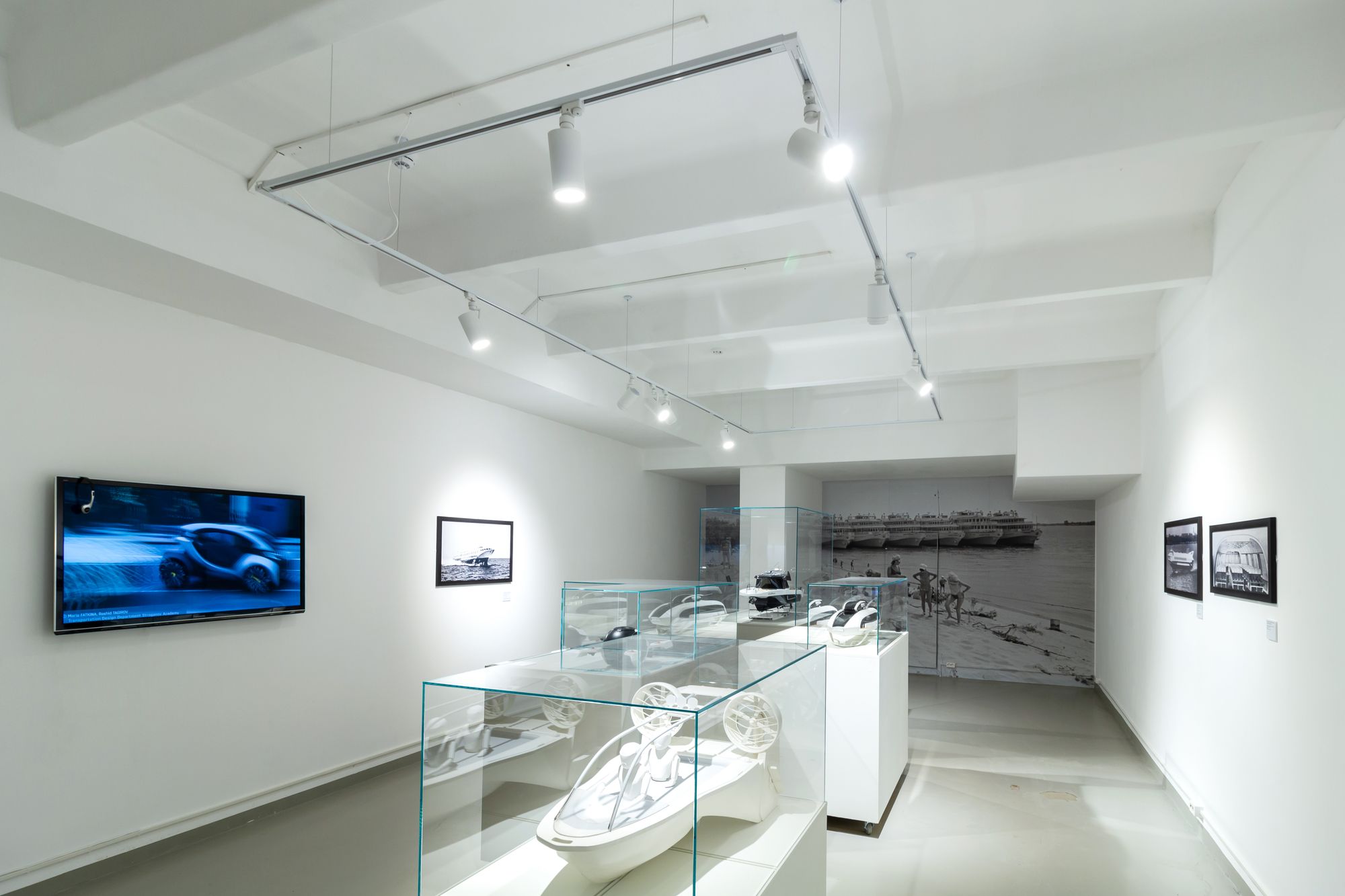 Для музеев очень важно качественное освещение с высоким индексом цветопередачи. Использование современных трековых светильников позволило создать локальное освещение с возможностью в любой момент поменять расположение светильников и направление света, что особенно необходимо при смене экспозиций. Лаконичные корпуса светильников удачно вписались в общий интерьер современного музея.