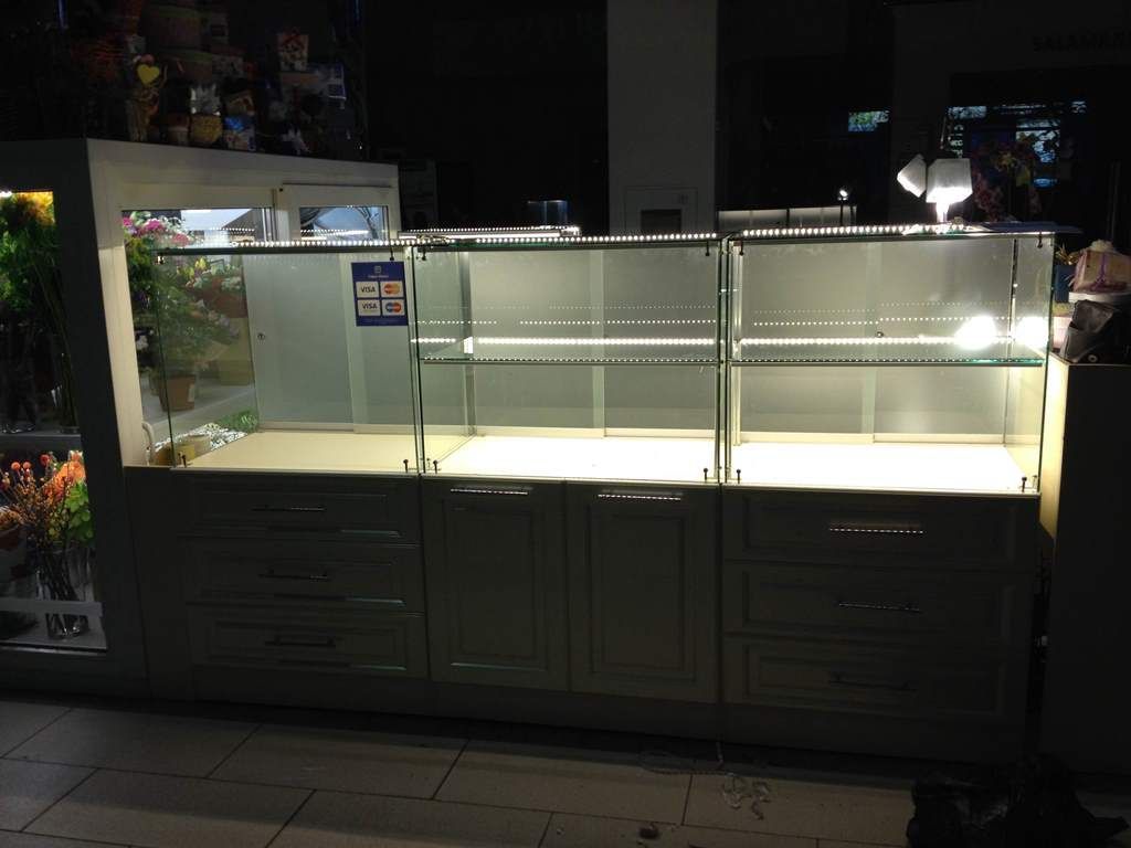 Все чаще в торговых центрах можно встретить витрины со светодиодной подсветкой. Для организации подсветки применяют различные варианты крепления светодиодной ленты, как с применением алюминиевого профиля, так и без него. Алюминиевый профиль дает возможность добиться более эстетичного вида и более равномерной засветки, за счет применения матового экрана. Использование подсветки на основе светодиодной продукции от торговой марки arlight®, дает ряд преимуществ таких как: