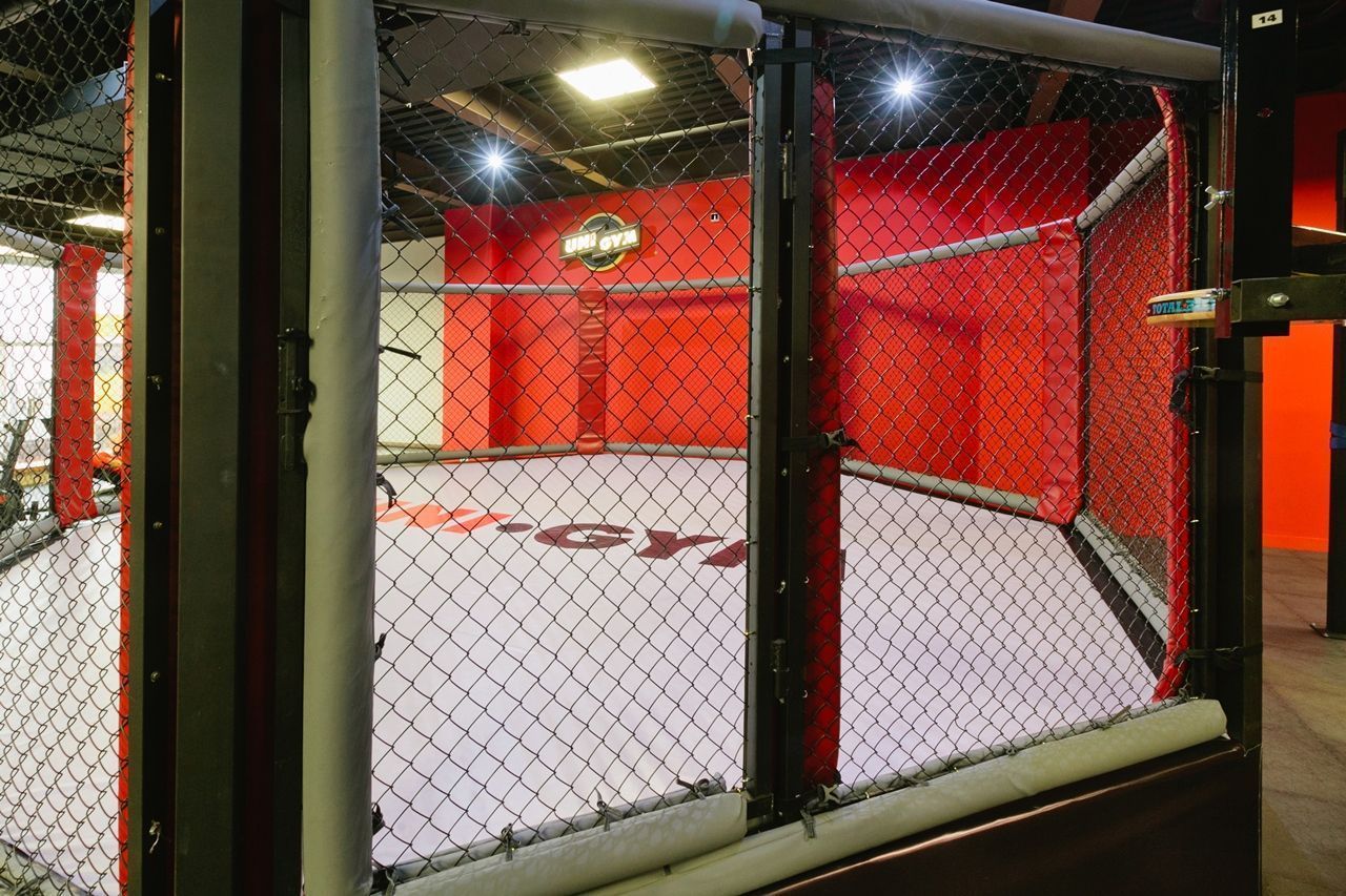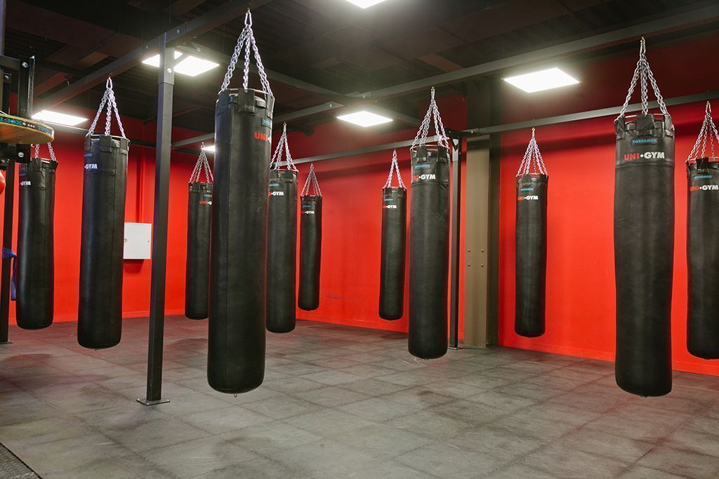 В боксёрском зале ничто не должно отвлекать внимание, поэтому там декоративная подсветка установлена не была, только светодиодные светильники Arlight - квадратные тонкие панели на подвесах - для основного освещения.