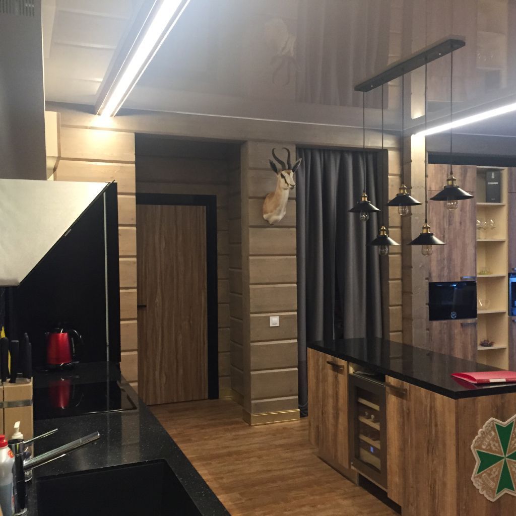 Освещение в загородном доме выполнено светодиодными светильниками, встроенными в потолочные балки. Корпуса светильников скрыты от глаз, а матовый экран находится на одном уровне с нижней плоскостью балки, благодаря чему создаётся эффект линий света. Для изготовления светильников была использована мощная светодиодная лента arlight® с современными светодиодами smd 2835, установленная во встраиваемый алюминиевый профиль для светодиодной ленты.